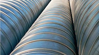 spiral rib pipes feature better hydraulic efficiency than traditional integral or spiral corrugated pipes and they are widely used for various storm sewer projects or acting as liner pipe for rehabilitating existing culverts. Made of quality galvanized or polymer coated steel, spiral rib pipes have lock-seam structures with external ribs formed by passing through roll forming line. Decades of uses have proven spiral rib pipe is one revolutionary product that combines following advantages together.
