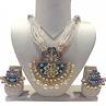 This jewellery set contains necklace and ear tops set. This necklace has heavy designed metallic pendant and decorated by kundan. It's a very unique design to wear in parties and tradtional festivals. It can be a nice gift to your dear ones...