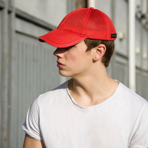 Fused foam backing for a padded effect Contrasting colour sandwich peak Result rubber badge sewn to rear Fabric size adjuster with polished metal buckle