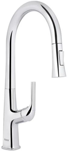 PULL-OUT SPRAYER: Includes a detachable pre-rinse head with a convenient push-button for enhanced functionality and ease of use.