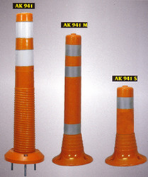 Spring post is made of special flexible material (poly-urethane). It can be quickly restored to its original shape without doing any damage to spring post as well as vehicles in case of high speed collisions. Two / three bands of reflective tape are pasted on the spring post. It keeps excellent mechanical & chemical properties such as impact resistance & tensile strength even under bad weather conditions with wide ozone resistance (uv stabilized) so that it is not discoloured. The base of spring post is fixed on the road surface with the help of three bolts and special epoxy bond. The bond is so strong impact after installation.