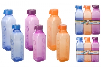 Poly Propylene fridge bottles, Made of food grade PP material, Ideal for water storage,M Refrigirator safe, Dishwasher safe in top rack, Can use for hot liquids, Odourless, Available in set of 3 (assorted colours)