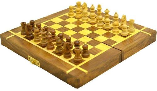 Square Wooden Chess Game Board Set, For Playing, Color : Brown