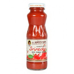the most delicious sauce from thailand. Mae pranom is the true original brand known to all thai people and offered in corner stores & vendor carts throughout the country. Mae pranom dipping sauce is more robust and has slightly higher chili heat than mae ploy brand. Especially delicious as a dipping sauce for any kind of chicken, but also goes well with shrimp, fish cake, spring roll, sausage etc. We love this sauce and highly recommend it. Packed in a beautiful glass bottle with attractive label, mae pranom is a very large producer employing the highest quality standard. Product of thailand.