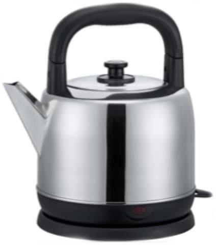 4.1L Cordless Convectional Kettle with Folding Handle Features: #304 Steel Body with Shiny Finished Concealed Heating Element Indicator Light on Switch JIATAI Controller Automatic Power Off Boil-Dry Protection BS Plug with 0.7M Power Cord CE Approval