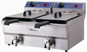 We are offering stainless steel electric double deep fryer with valve. Model voltage (v) capacity (l) power (kw) size mm packing size (mm) n.w. (kg) g.w.