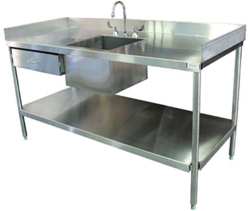 Stainless Steel Laboratory Round Legs Sink Table that we offer comes with optional drawer, under shelf and back and side splashes. 16 Gauge stainless steel is used to manufacture Stainless Round Legs Sink Table at our vendors̢۪ end. It provides a solid work surface and washing area. Our Sink Table features swivel gooseneck faucet, wing handles and heavy duty leveling feet. Plumbing hardware and 1/2 inch spill/retainer lip are provided with our sink table on demand.