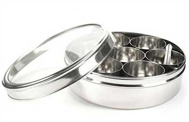 We offer an exquisite collection of Masala Dabba which is used for storing spices in a safe and hygienic manner. It comes in 7 small bowls and 4bigs bowls according to the requirements of the clients. We manufacture our masala dabba using steel and ensure its quality before offering them.