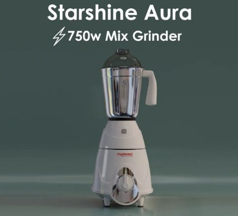 Size - 1.75 Liters Power Consumption - 750 W Color - White Total Jars - 3 Suitable For - Wet Grinding, Chutney Grinding, Mincing, Dry Grinding, Blending The Starshine Aura Mixer Grinder, a versatile addition to your kitchen arsenal designed to streamline your culinary tasks with precision and efficiency. Crafted with the utmost attention to detail, this Mixer grinder embodies Starshine 's commitment to quality innovation.