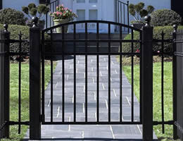 a black arched swing steel fence gates to protect the house from any attempt of trespass.