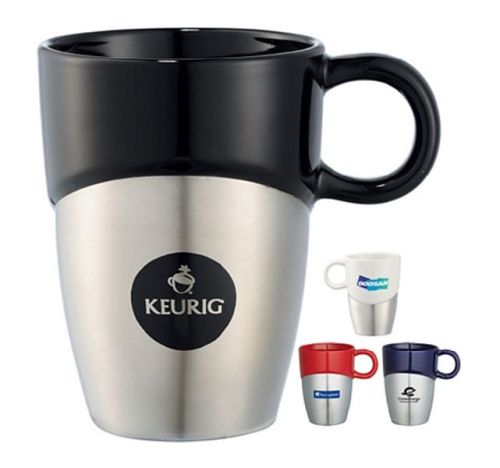 Product name:ceramic with steel mug description: ceramic with steel mug item no: db-cs1002 capacity: 350ml n.w g.w: 9.511.5kgs packing: white box meas: 24pcs40x39.5x28.5cm different color available. Bpa free and fda approved plastic mug, travel mug, enamel mug on sale factory