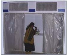 Sterile air tent is provided to protect the surrounding from contamination. It is used in specified areas where the manufacturing and process activity is taking place. The product is custom built.
