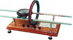 Stewarts and gees apparatus body: consists of a rectangular aluminium rods( graduated up to 50 cm on both sides) frame supported on wooden board coil: an insulating copper wire is wound on a a circular aluminium alloy frame & the ends of the wires are connected to the terminals a compass box: moves on a platform (of aluminium alloy) which moves on the rectangular frame.