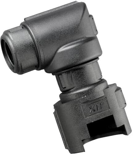 Hinged Connector Interface Fitting, 90 Degree Elbow with 360 Degree Swivel, 12-Way Deutsch DT Connector to Conduit, Conduit Size NC16/NW13, Operating Temperature -40 to 120 Degrees Celsius, RoHS Compliant, IP40 Rating, Very High UV Protection, Polyamide (Nylon), Black