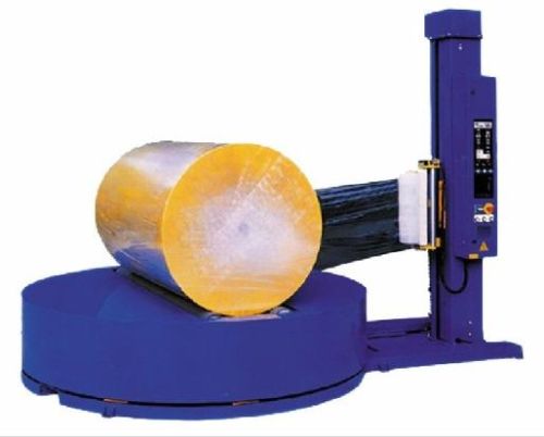 Stretch wrapping machine for reel feature: 1.suitable for paper, film foil, tyrecord fabrics and similar materials produced in reel form. 2.can be used as reel wrapper and pallet wrapper & change-over is by a single switch. 3.counter gives stretch % applied & quantity of film consumed in each reel/ pallet. 4.provision for wide range of reel diameters. 5.various levels of protection can be achieved by using flexible control of turn table and reel speeds. 6.low profile height of turn table for easy loading and unloading of reels. 7.applies pre-stretched film delivered from state-of-art powered pre-stretch unit. 8.film stretch perventage can be easily adjusted to optimise film consunption and provide dufficient protection.