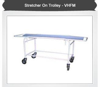 Our company offers Stretcher on Trolley, which is manufactured using quality raw material and is available in the sizes such as 210 L x 56 W x 82 H cms. The frame work is made of ERW tubular pipe of 31 mm. dia. mounted on four 15 cms. Dia. castors. Technical specifications  Removable stretcher top made of CRCA sheet pressed on tubular frame Pre-treated and epoxy powder coated Optional: Complete S.S. and S.S. Top