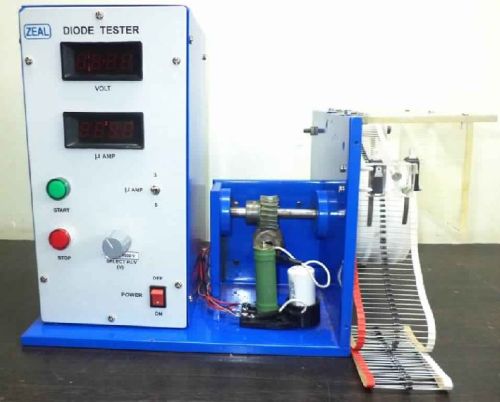 Tester has motor driven geared mechanism to pull strip of diodes with test riders applying reverse voltage on the leads. Whenever leakage current exceeds than the acceptable limit, the motor comes to halt with audio/visual trip indication. Test voltage is removed. Operator has to take out the faulty diode and continue with the further testing.