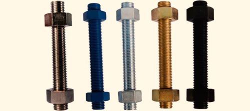 Zinc Plated Hot Dip Galvanized Stainless steel Black PTFE Yellow Dracomet, TIN, Client Specific Requirements Standard: ASTM ASME BS DIN JIS BS EN ISO Material : Carbon Steel, Mild Steel, Alloy Steel & Stainless Steel. Dia Range: M10 TO M100 AND 38” TO 4” Threads: ANSI B 1.1 Class 2A Fit (Imperial) , ANSI B 1.13M 6g (Metric)