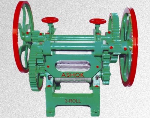 DIMOND MODEL (3-ROLL) Four Ball Bearing (6206) Roll Size 102 mm X 210 mm Lenth Power 3 HP Mian Roll Gear Steel (Steel Casting) Total 8 Gear