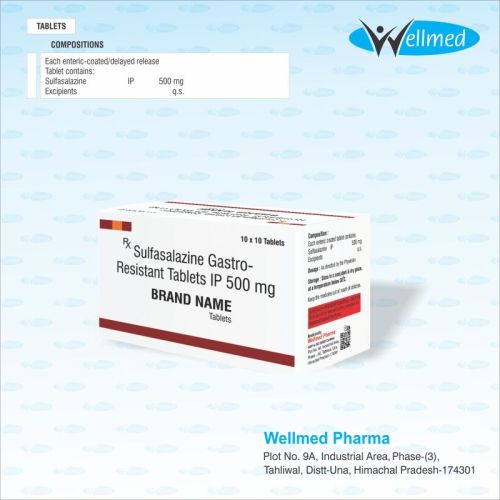 Each enteric-coated/delayed release   Tablet contains:   Sulfasalazine          IP      500 mg   Excipients                   Â