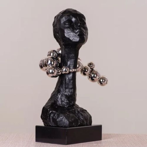 | Product Material | Resin Body In Black Finish With Metal Neck Strap and Balls In Reflective Chrome Finish and Black Marble Base. |