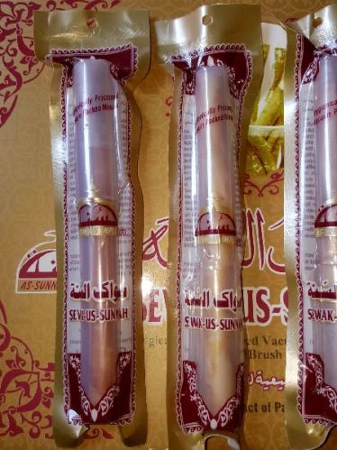 Sewak al-huda is the root of a peelu tree( salvadora persica ) known in arabic as arak. It is hygienically processed and individually vacuum packed in an attractive wrapper with complete details in english as well as arabic transcript about the product. It is also featured with proper upc( universal product code ) barcoding, individual hanging system and a self display box. The sewak is the safer& more effective natural toothbrush in comparision with synthetic one. It is the most effective way of maintaining the lasting rnhigh level of oral cleanliness which directly relates to the overall wellness of the body.