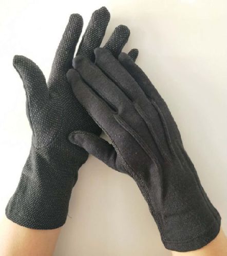Contact Supplier86% cotton 14% pvc dots sure grip gloves 86% cotton 14% pvc dots gloves extra long to keep your wrist covered inall positions washable size: s, m, l and xl color: white and black color our factory package: our workshop: faq 1.q:can we change it to our own logo?a: yes,we can help you to add your logos on gloves. 2.q:wha`t the moq?a:no moq requested, can be any quantity as your requested. 3.q:what`s the size of your glove?a: different size is available.  sm, md, lg, xl 4.q:what`s the sample time and lead time for mass productions?a:normally, sample time is about 3-4 days after receipt your details, sample is free, you just pay the freight, if we can earn your order later, the freight will be refund you. B: lead time for mass productions is about 30-35 days after deposit. 5.q:what`s the payment term?a: we can accept for paypal, western union, money gram and t/t. full prepaid for small orders and 30% deposit and balance 70% before shipping for big quantity.