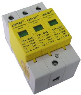 LY-(D)1 series surge protective device(SPD) suits for TN-S,TN-C-S,TT,IT etc power supply system. Designed according to IEC61643-1,GB18802.1 installed in 35mm DIN rail. When SPD fails in breakdown for over-heat or over-current, the failure release will seperate from power system and give indication. Green means normal, red means abnormal. Can be replaced for the module when has operating voltage.