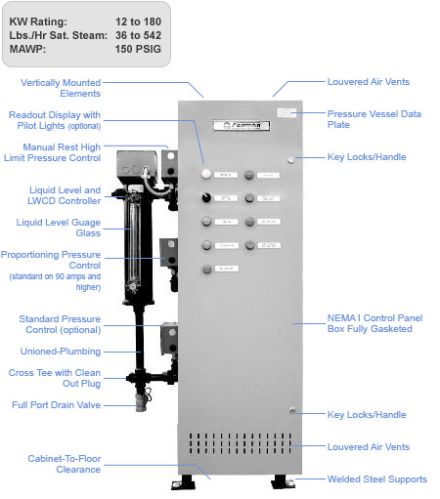 Sussman SVS Electric Boilers are safe, versatile easy to-use heat sources for low or high pressure steam. Applications include steam for: Chemical Tanks Reactors, Distillation and Autoclaves Dyestuffs Food Processing Jacketed Vessels for Processes Pipe Tracing Viscous Material Fuel Oil Line Heating Anti-Freeze Protection Comfort Heating & Humidification