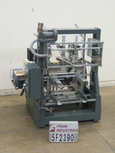 Tray former, hot melt glue, rated up to 58 trays per minute – depending on materials and application. Tray size range: 7" to 34" in Length; 8-18 to 22 in Width; 1" to 12" in Height. Knockdown size range: 10-12" to 37-78" in Length; 12" to 36" in Width. Equipped with blank tray magazine, suction cup recipicating vacuum pick-n-place, vacuum tray feeder with friction wheel, Nordson hot melt glue system with pattern contoller, vacuum pump, and safety guarding.