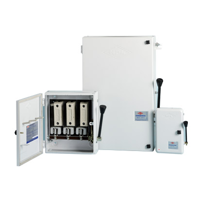 Rewireable Offload Changeover Switch (Side Handle Operated), Metal Clad Plugs & Sockets : 10A, 20A for single Phase (2P+E), 250V,Rewireable Switch Fuse Unit : 16 Amps to 320 Amps.