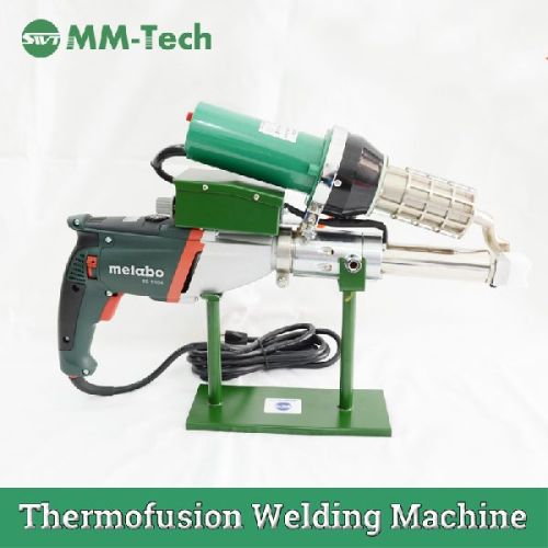 Contact SupplierMM-Tech Brand Thermofusion Welding Machine including Handheld Extruder Plastic Extrusion Welder,Plastic Extrusion Welding Gun SWT-NS610A for weld geo-membrane,hdpe pipe,plastic tank,SWT-NS900 Geomembrane Wedge Welder for geomembrane sheet,and SWT-B16050H Pe Welding Machine Butt Fusion Welder for HDPE Ppie and Fittings. SWT-NS610C Hand Extrusion Gun & SWT-NS610D Hand Held Plastic Extruder with MEITABAO brand driving motor.Plastic Extrusion Welder SWT-NS610B Application and FeaturesPe Hand Extruder  SWT-NS610B is used for weldng PE,PP,PVC,PVDF and thermoplastic material.This tool is of lightweight,stable performance,convenient operation,large-amount extrusion and high efficiency,the advantage is for welding narrow gap and corners where is not easy to reach. 1.This welder start to weld when the temperature up to 270°c2.This welder is welded with PE or PP welding rod 3.0-4.0mm,if you want 5.0mm welded,please specify before order.3.It comes with two welding shoes ,flat one and corner one.4. Any customized demands, you can ask us directly. We have professional technicians team. Technical Parameters For  PP Extrusion Welders Model SWT-NS610B Voltage 220V Frequency 5060Hz Extruding Motor Power 800W Hot Air Power 3400W Welding Rod Heating Power  Â