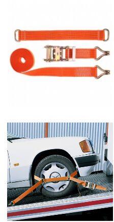 a double locking short narrow handle ratchet, claw hook end fitting, an oval link ended bridging choker, 50mm high tenacity polyester webbing.