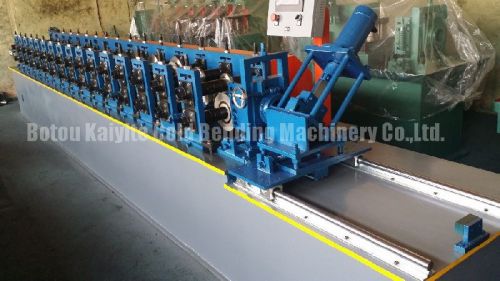 Contact SupplierT Bar Light Keel Roll Forming Machinery Light keel made by the T bar light keel roll forming machinery is suitable decoration the inside of the building of fire protection requirements . It is mainly used for large public buildings , such as large hotels in the hall , waiting room, waiting hall , shopping hall business hall , theaters , halls, exhibition halls and so on . This is easy to maintain the air condition , electrical fire equipment . Decoiling the sheet→Sheet guiding→Roll forming→Measure length→Cutting the panel→Panels to product stand   Raw Material A. Suitable Material: Colored Steel Plate, Galvanized Board, Aluminum Plate;  B. Thickness: 0.7mm - 1.2mm;  Main Body A. Roller station: 14 Stations;            B. Diameter of shaft:Â ï¿ 50mm, 45# steel; C. Roller material: 45# steel;             D. Frame: 350 H steel; E. Working speed: 25 - 35 mmin; Power A. Motor power:5.5 Kw,  Hydraulic power: 3 Kw; B. Voltage: 380V 50Hz 3Phases or Customization; C. Driving way: By Chain Hydraulic system : Material of blades: Cr12, quenching treatment.  Forming rollers Specification: 45# steel, CNC Lathes, heat treated Feature: hard chrome plating, 0.05 mm  Main frame  specification: 350 H steel .