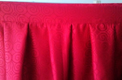 The solid colors as well as the box style define the range of the Table Skirts on offer. We are known as a renowned Manufacturer, Exporter and Supplier of Table Skirts. We use the best grade fabrics like 100% polyester jacquard fabric to produce the finest Table Skirts in sizes like 17'. The Table Skirts are made to order and can be availed at the most reasonable prices.