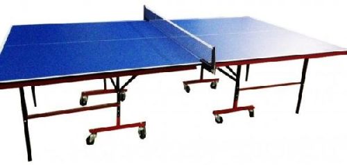 GATT-005 Table Tennis Table INT Tournament (25mm)    An Excellent Competition Table with roller trolley  25mm fibre board, Blue coated  This Table is very stable and functional.  The legs fold out automatically.  It has an extra high density top with excellent bounce.  Packaging in double carton  Frame 2inch*1inch   Square legs 1.5inch*1.5inch  8 wheels with the dimension of 100mm  Gross weight 115 kg   Net weight 105 kg   Storage size L-152.5cm W-66.5cm H-154cm  For Indoor use only.Â