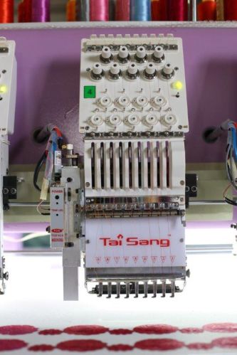 Tai Sang embroidery machine platinum model 920 FEATURES OF MACHINE FlatMulti Heads Machine with THERMAL CUTTING DEVICE (TCD) SPECIFICATION OF MACHINE Dahao Computer Technology (10 inch LCD), Trimmer, Double Cam, Main Servo Motor, X & Y Axis Servo Motor, Manual Oiling, Auto Tension Head, Kobest Rotary Hook (1.6X Made in Korea) NEEDLE: 9 HEAD: 20 HEAD TO HEAD AREA: 300 AREA OF X & Y AXIS: 600 X 800 Model: Platinum Speed: @1200 RPM 365 X 24 X 7 - Back up service around the world Agency opportunity can discuss for many Destination.