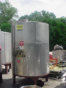 1000 gallon STAINLESS STEEL TANK CONE BOTTOM CLOSED TOP Manufacturer Hicks, rated for atmospheric pressure 63″ diameter a 79″ straight side, cone bottom & top Stainless steel with 4 legged steel stand. Has top manway & 2″ top center inlet 2″ bottom center outlet to elbow with ball valve and quick connect Last used for Alcoholic Beverages