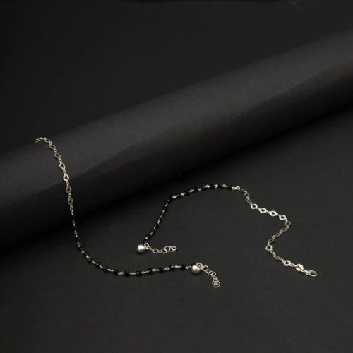 Tanvi designer anklets, crafted from premium 92.5 sterling silver, redefine elegance with a timeless allure. The delicate designer anklets effortlessly combine modern style with classic charm, ensuring every step exudes grace. Our silver jewellery is handcrafted with intricate designs that feature a one-of-a-kind design for the one-of-a-kind you. Tanvi designer anklets highlight: Base Metal: 92.5 Silver Plating: Silver Stone Type: Black Beads Type: Anklets Sizes: Free size Country of Origin: India