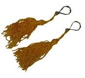 A collection of thin cords create a finished tassel to attach to a bag or a set of keys. Technical Details: Technical Name: T-08 1" loop with Chainette Tassel on figure 8 key ring Keychain Tassels available in custom colors on ordering with threshold quantity