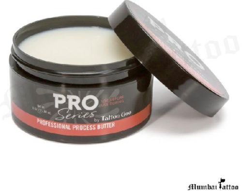 Pro Series™ Brand by Tattoo Goo® in 6oz Introducing New Tattoo Process Butter™For use before + during the Tattooing ProcessArtist tried and tested premium shea butter, olive and coconut oil formula.A process Premium Shea Butter, Olive and Coconut Oil all natural extract so rich with skin nutrients only Tattoo Goo could producePetrolatum and Lanolin freeNon-Greasy -Vegan Friendly with Vitamin ARichly scented with Mango-Coconut nut oil extractsWill not separate under most conditionsArtist tried and tested