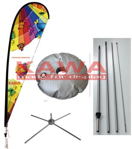 We are offering teardrop banner, beach flag. fiberglass pole,multi-section designed single or double side printed available in three size: small:2.20m medium:3.30m large:4.70m cross base with ball bearing inside,so the flag pole could be rotating freely in wind.
