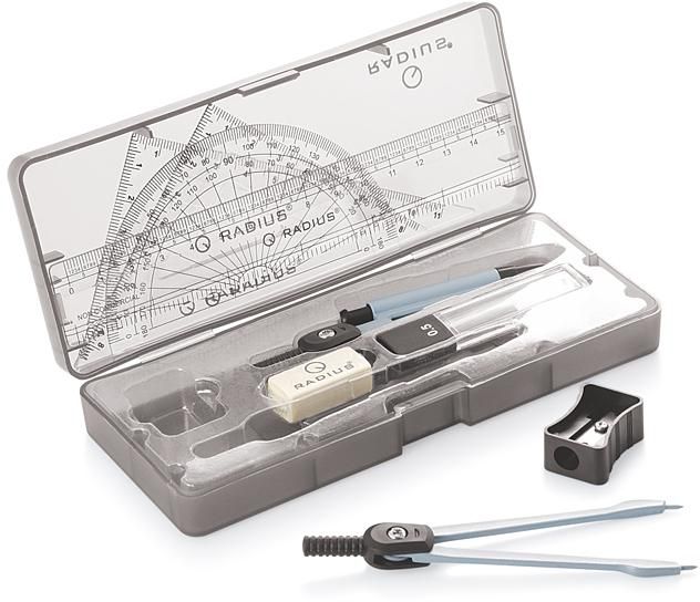 Plastic Case, Solid Die Casting Divider & Compass, 45° Set Square, 30°/60 Set Square, Protector, Ruler, Pencil, Eraser & Sharpener