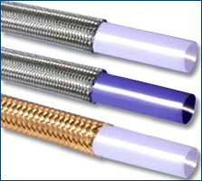 Teflon hose with S.S. 304 braiding Inner tube plain lying form Size: ¼” to 1” APPLICATION Dilute & Concentrate Acid. bullet Solvent caustics and hot layers. bullet Reacting agents in compound bullet Steam Gases bullet Dairy & Foods FEATURES Temperature resistance from -730C to + 2600C bullet Pressure rating upto 170 Kg/cm2 bullet Good conductive of and axis ting agent.