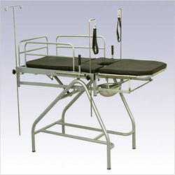 The table has three section stainless steel top, stainless steel base, and backrest on the ratchet. Furthermore, the table has hand grips on both side and a middle section having primal cut with the bowl. Besides, clients can get the table from us at industry leading rates. Overall approx Size: 1830 mm L x 870 mm W x 800 mm Ht Accessories: Lithotomic bars, Stirrups , Step Stool & Mattress  Head Low up (T & RT) by screw mechanism Sliding foot end Railings on three sides