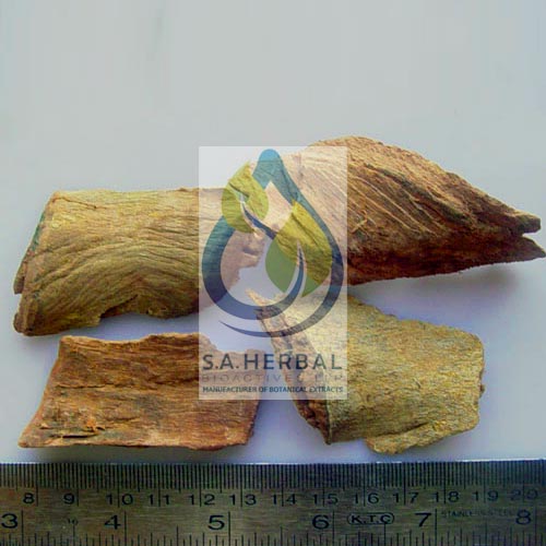 Arjun Chaal Extract or Terminalia arjuna (Latin name) is considered to be Cardiac wellbeing botanical plant used in Ayurveda (East Indian traditional medicine) since 2500 B.C. It has remarkable cardio-protective, heart muscle strengthening properties. In Ayurveda it is said to have better effect on Vitiated Kapha & pitta humors of body. Arjun also has absorbent / astringent action, which helps to control Raktapitta or bleeding problem (also by virtue of its vaso constriction action). Arjun helps to reduce frequency of loose motions in dysentery or diarrhea. In Ayurveda a formula known as “Arjun kshirpaak” is prepared from Arjun bark Extract, cow milk and water; it is used in various heart ailments. Arjun Chaal Extract is useful with Adulsa (vasaka) Extract & honey, sugar candy, cows ghee in pulmonary (Lungs) ailments.