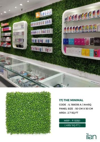 Contact SupplierArtificial green walls, also known as faux or synthetic green walls, are designed to replicate the appearance of natural living walls using artificial materials. These walls are composed of various artificial plants, foliage, and sometimes even flowers that are arranged in a visually appealing manner. The purpose of artificial green walls is to provide the aesthetic appeal of a living green wall without the need for ongoing maintenance and care.
