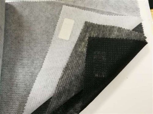 Item:100%polyester thermal bonding line knitting double dot non-woven interlining color:natural,white,charcoal,black width:36" 44" 60" glue:pa weight:base w:24 glue w:9 total:33 mesh:cp66 remark:water wash,dry wash,enzyme wash.