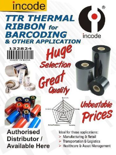 INCODE Thermal Transfer Ribbon , TTR , for variable printing of rate , batch code, expiry , shipping details etc, on paper labels, paper tags, stickers, taffata , plastic labels, pp labels, polyester labels etc.