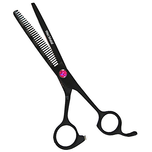 Hair Thinning scissors / Shears made of stainless steel J-1 and J-2 440C. with 52 to 58 hardness... Avaialable in different patterns, finishes and sizes.. 32 teeth, with fixed thumb rest. Black titanium coated.